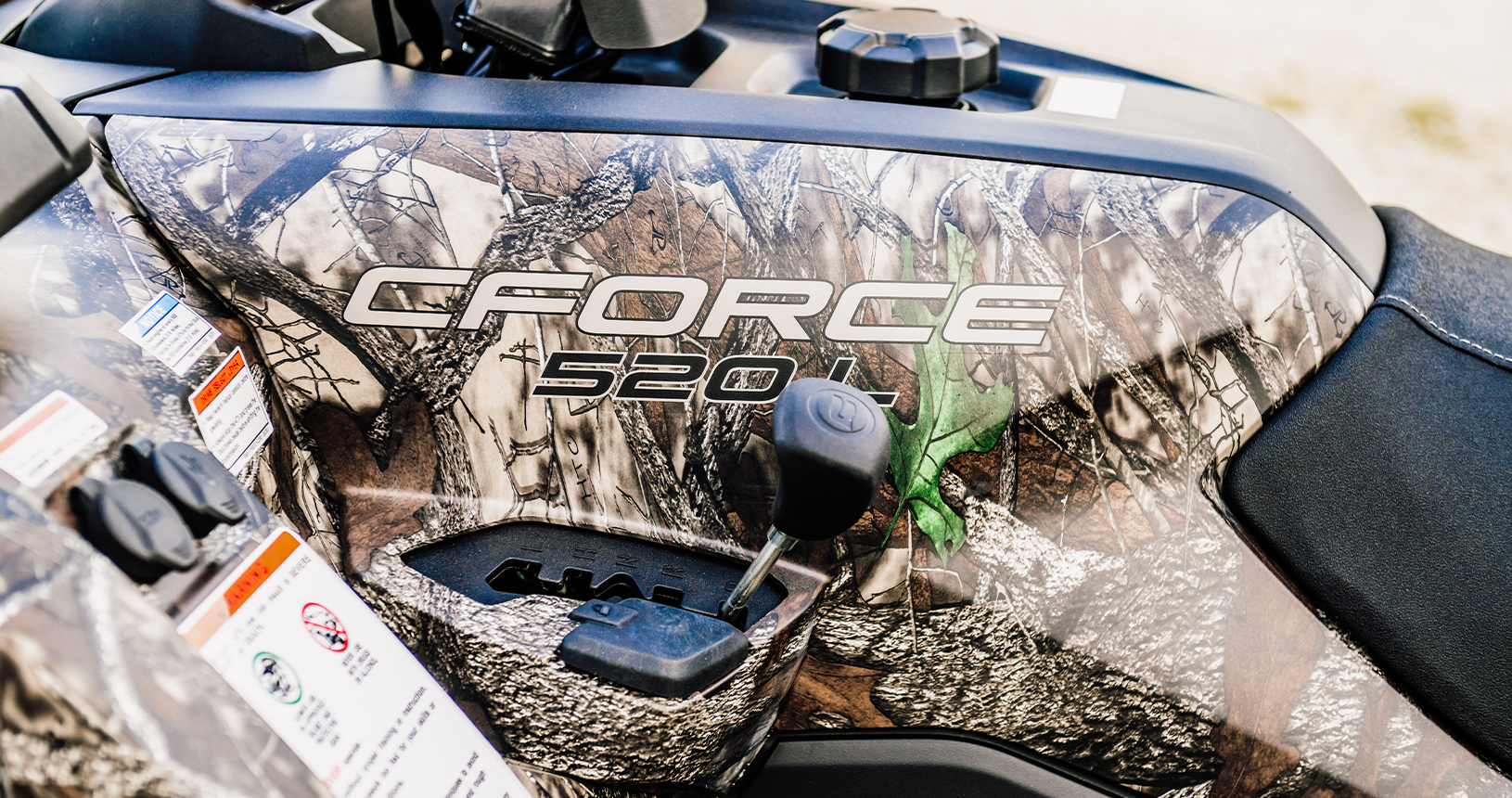 Das neue, sportliche Styling verleiht dem CFORCE 520 L-Modell ihre unverwechselbare Charakteristik. Mit gewichtsreduzierten Verkleidungen, neuem Kühlergrill für optimierte Luftzufuhr, RIDEVISION® LED-Hecklichtern und der einteiligen Tankabdeckung bietet das kompakte CFORCE Design höchste Funktionalität im täglichen Einsatz.